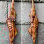 A hybrid longbow with black limbs, ash core, and a cherry/maple/walnut laminated riser. A hard and fast rocket launcher!